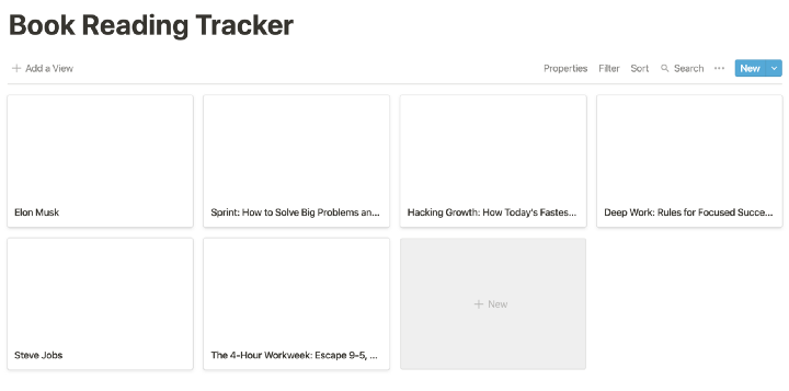 Trong Template bạn có thể sử dụng mẫu Book Reading Tracker có sẵn hoặc tự tạo cho mình một mẫu cho thể tùy biến theo sở thích cá nhân.