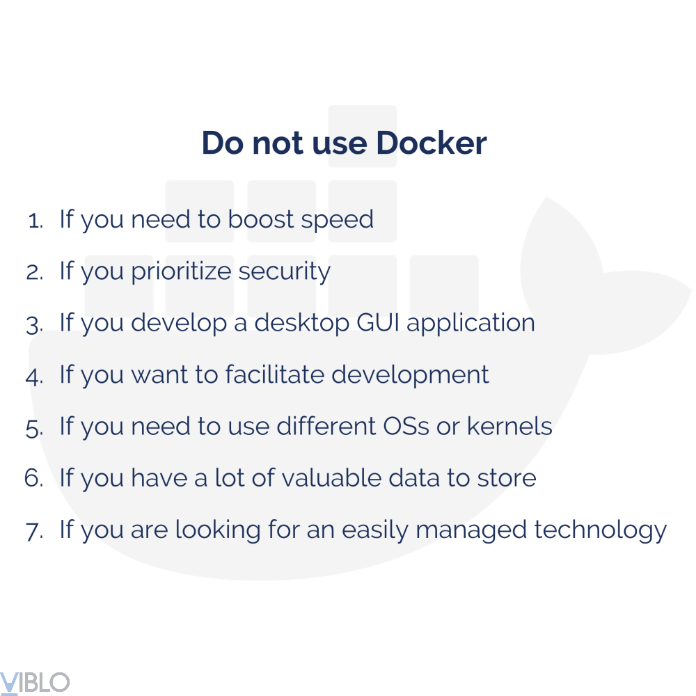 Mặc dù có tất cả các lợi ích của Docker, bạn không nên sử dụng nó để chứa từng ứng dụng bạn phát triển.